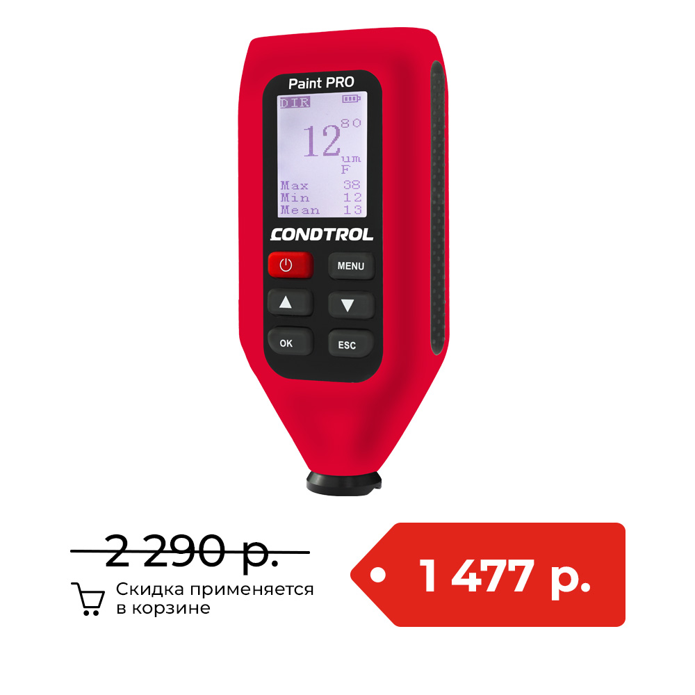 Paint Pro CONDTROL – универсальный толщиномер, предназначенный для быстрого и точного измерения толщины покрытий на изделиях из цветных и чёрных металлов. Paint Pro CONDTROL – старшая модель толщиномера Paint Check, отличающаяся большим набором полезных функций, который по достоинству оценят профессионалы.Автоматическое определение металла