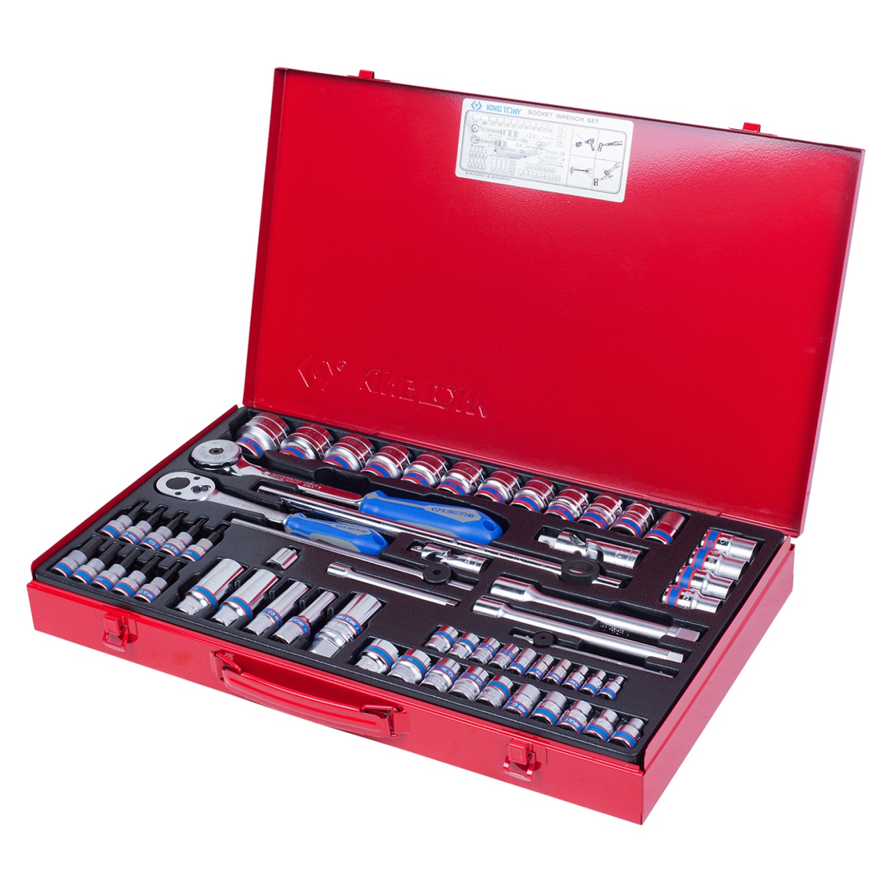 Набор торцевых головок с принадлежностями 1/4", 3/8", 1/2", шестигранные, 4-32 мм, 62 предмета KING